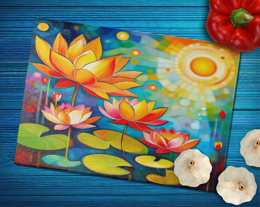 Glasschneidebrett - Lotosblüten 1